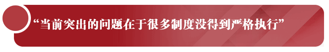 诚然,我们的制度体系还要完善,但当前突出的问题在于很多制度没得到严格执行。就像我们反对“四风”一样,很多问题早就有制度规定,大吃大喝问题抓了多少年了?抓一抓好一点,过一段又反弹,顽固得很。这次中央下决心抓“四风”问题,特别强调要建立和执行制度,而且要常抓不懈。制度的生命力在执行,有了制度没有严格执行就会形成“破窗效应”。《在中央政法工作会议上的讲话》(2014年1月7日)