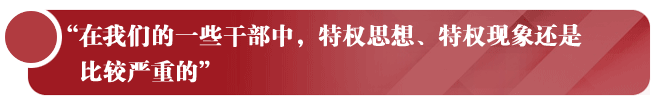 在我们的一些干部中,特权思想、特权现象还是比较严重的。从上到下,违规占有多套住房的,违规占有公家车辆的,以各种形式侵占公共利益的,违规侵害群众利益的,明里暗里为亲属升官发财奔走的,以权枉法的,这样的干部不乏其人啊!这些特权现象严重损害了社会公平正义,引起了群众极大不满。我们决不能见怪不怪啊!焦裕禄、杨善洲等同志的事迹之所以感人,群众之所以信服,很重要的一个原因就是他们绝对不搞任何特权,有的事甚至做到一般人看来都不近人情的地步,但就是这样过得硬的干部,在群众中才有口碑。《在第十八届中央纪律检查委员会第二次全体会议上的讲话》(2013年1月22日)