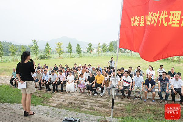 浙江省龙游县组建以各行各业青年人为主体的“8090”新时代宣讲团,走进田间地头、村社广场进行宣讲。图为7月14日,在横山镇天池村,援鄂护士余娜为村民讲述自己在武汉的亲身经历。新华社记者 翁忻旸 摄