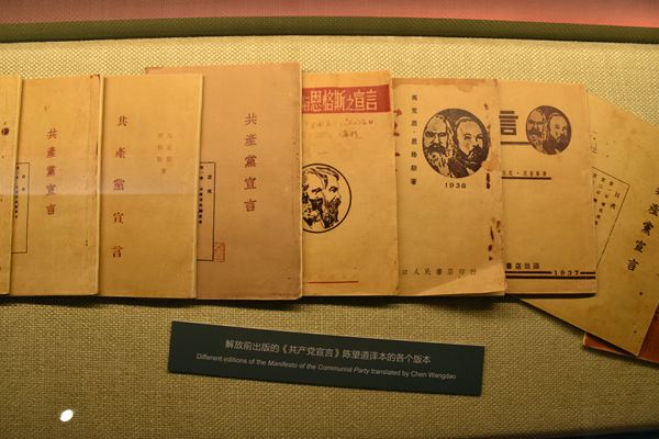 中国共产党自成立之日起,就把马克思主义作为自己的指导思想和理论基础,鲜明地写在自己的旗帜上。图为新中国成立前出版的《共产党宣言》陈望道译本的各个版本。(图片来源:视觉中国)