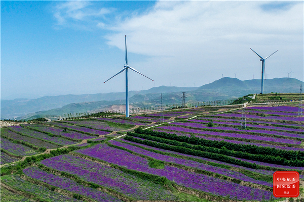 河南省三门峡市湖滨区高庙乡依托特殊地理优势,通过土地流转的形式规模种植中草药,带动当地村民共同致富奔小康。图为该乡集中连片的丹参种植基地。(河南省三门峡市湖滨区纪委监委 高武勋 摄)