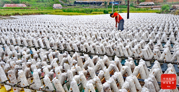 福建省古田县立足于“中国食用菌之都”发展菌菇特色种植业,全产业链产值超百亿元,全县70%人口从事食用菌产经销活动,以产业带动乡村振兴。图为黑木耳种植户在培育黑木耳菌棒。(福建省古田县纪委监委 刘剑峰 摄)