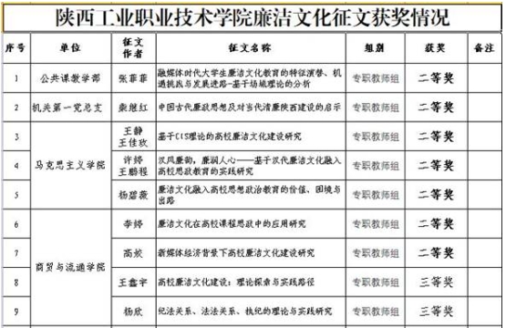 近日,陕西省廉政文化研究会公布了《关于表彰“加强党的纪律建设 推进党的自我革命”主题征文获奖论文和优秀组织单位的决定》,我校共有19项作品获奖,其中张菲菲等7位教师荣获二等奖,王鑫宇等12位教师荣获三等奖,学校荣获优秀组织奖。